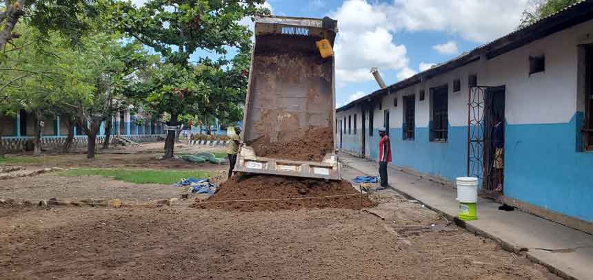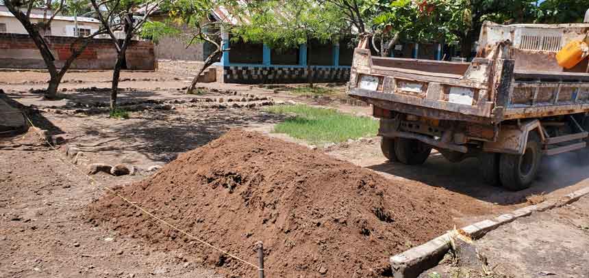 - Soil improvement and leveling, supported by trucks delivering fertile soil.